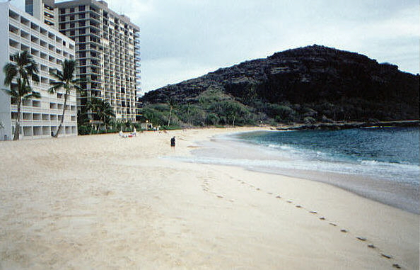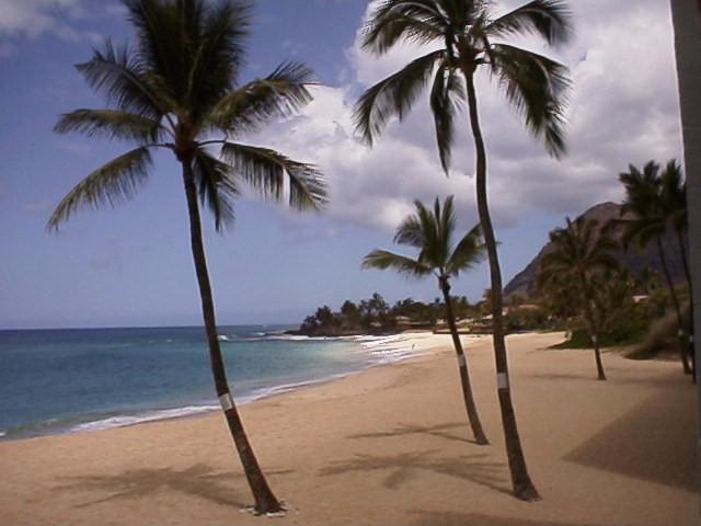The closer building is the Makaha Beach Cabanas; our condo is on the second floor. The taller building behind it is the Makaha Beach Princess, which is the only other condo building on the beach.